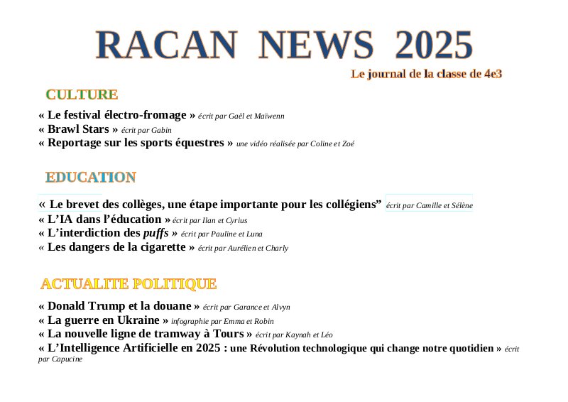 Racan News, le journal des 4e3 - Sommaire