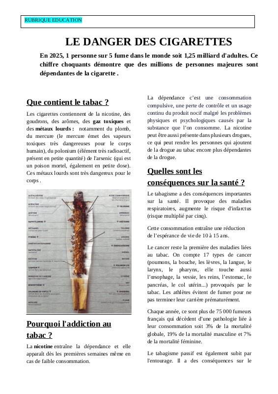 Les dangers de La cigarette