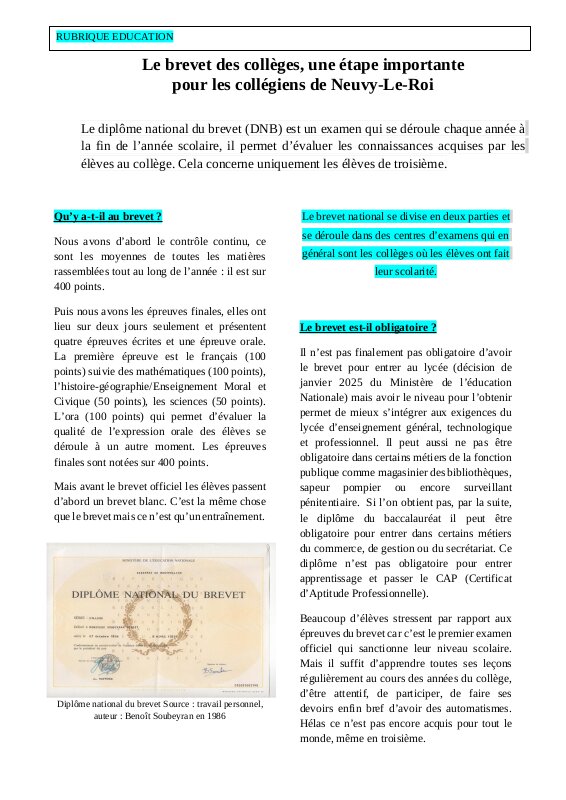 Le diplôme National du Brevet